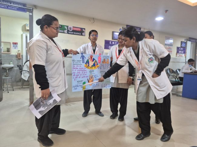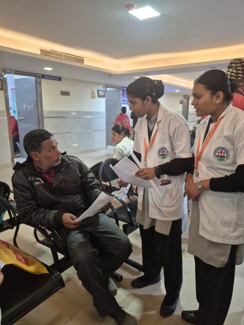 The program comprised poster presentations, pamphlet distribution, and health education sessions, which were actively carried out by the B.Sc. Nursing 3rd Semester and GNM 2nd Year students. The students participated with great enthusiasm and demonstrated a commendable sense of social responsibility by educating patients, attendants, and the general public about the causes, signs and symptoms, prevention, and treatment of leprosy, emphasizing that leprosy is a curable disease and that early treatment can prevent disability.