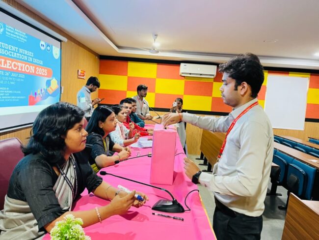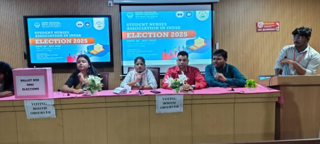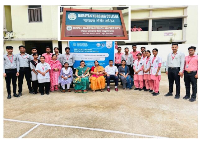 Narayan Nursing College, a proud constituent of Gopal Narayan Singh University, witnessed a vibrant display of democratic values and leadership during the Student Nurses’ Association of India (SNAI) Elections 2025 (Unit Code: 1419). Held on 26th July 2025, the event was guided by the esteemed leadership of Dr. Prof. K. Latha, Dean cum Principal, and Dr. Prof. Shaveta Sharma, Vice Principal, along with Mr. Sajjan Patel, SNAI Advisor, and advisory committee members Ms. Anju Singh, Ms. Sanskrit Aastha, and Ms. Monika Philips.