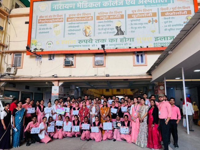 On the occasion of World Cervical Cancer Awareness Day 2026, the Department of Obstetrics and Gynaecological Nursing, Narayan Nursing College, Gopal Narayan Singh University, organized a Cervical Cancer Awareness Program on 23rd February 2026 at Narayan Medical College & Hospital.
